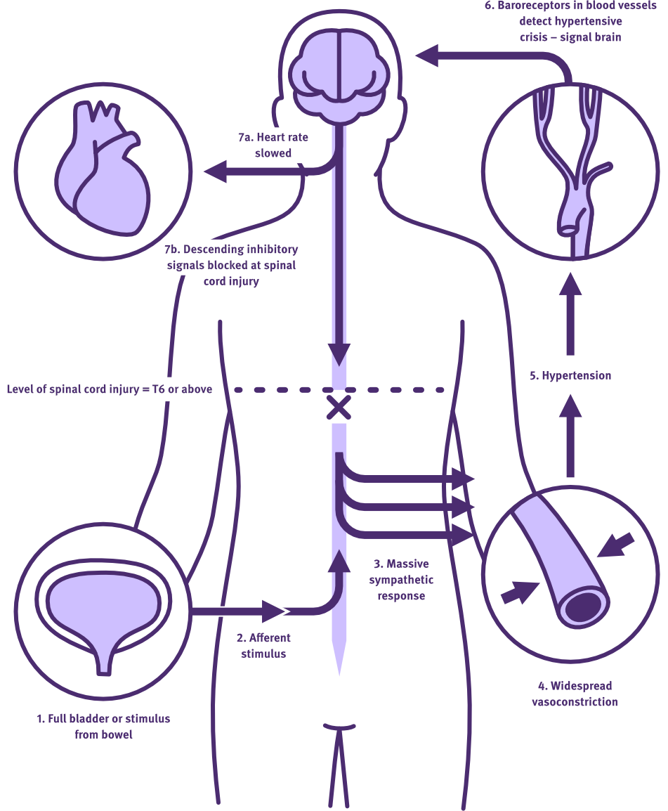 Diagram illustrating how autonomic dysreflexia occurs in a person with spinal cord injury