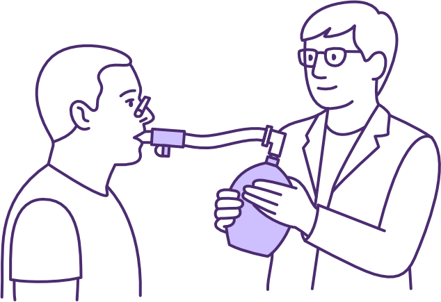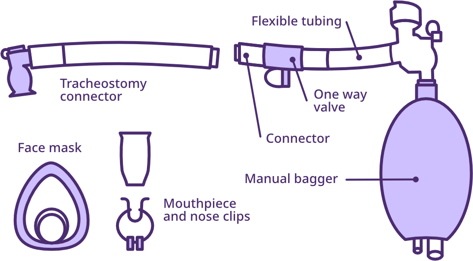 - some users may be able to self-administer the technique—for example, by positioning the bag between the elbow and trunk and squeezing it like a bagpipe; this offers additional safety, given the user is able to control insufflation within their comfort range but they must also be able to disconnect from the device for each exhalation.