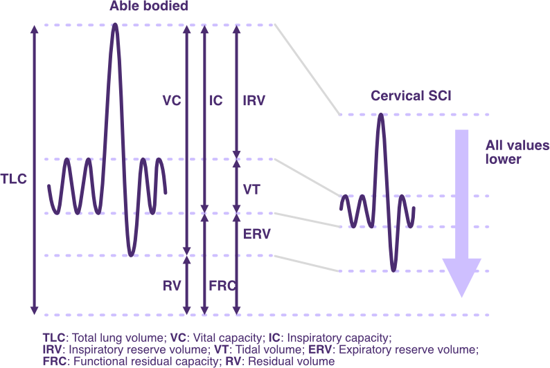 In addition to the effect of respiratory function changes following SCI, other activities associated with personal and acute medical care, may add to the work of breathing.