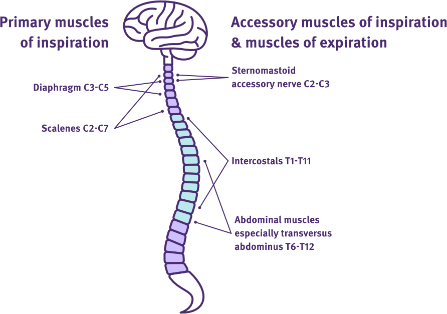 - include specific motor tests to grade the strength of the trunk, neck or head muscles involved in respiration (when assessing these body areas, it infers that impaired sensation of a dermatome indicates impaired motor function of the associated myotome)