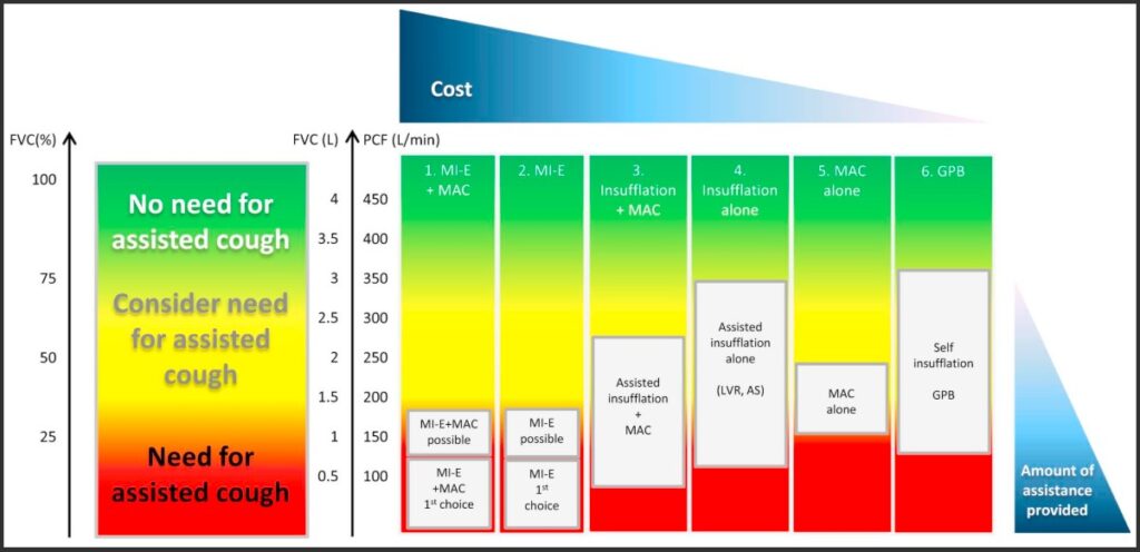 To maximise cough effectiveness and minimise the risk of respiratory fatigue, it is considered best practice to combine both cough augmentation strategies: